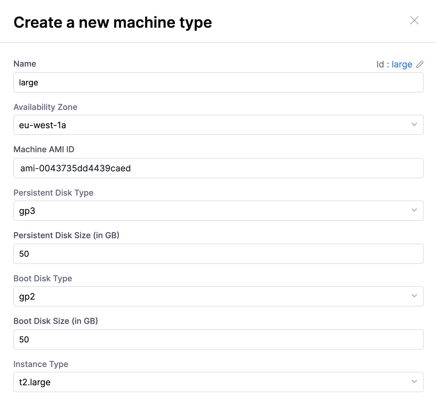 3. Fill in the required machine details and click Create.