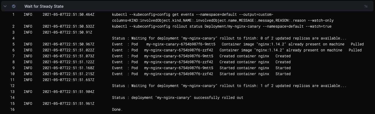 Next, Harness logs the steady state of the pods.