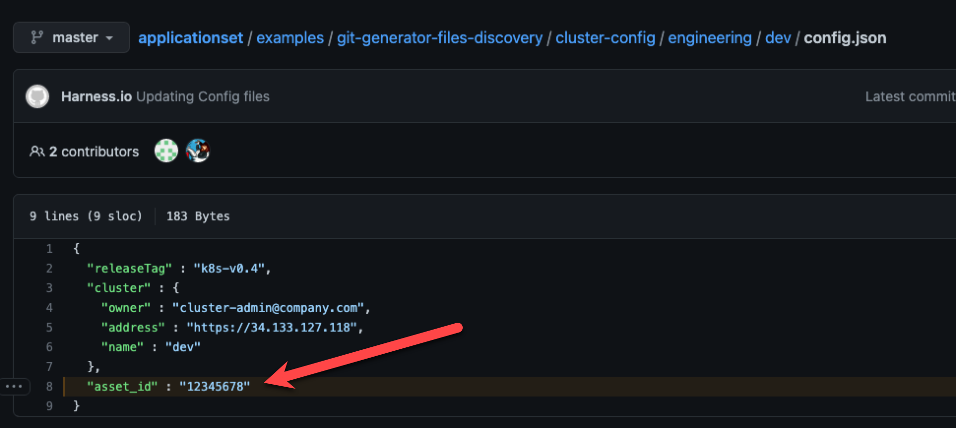 • Example path: cluster-config/engineering/<+env.name>/config.json