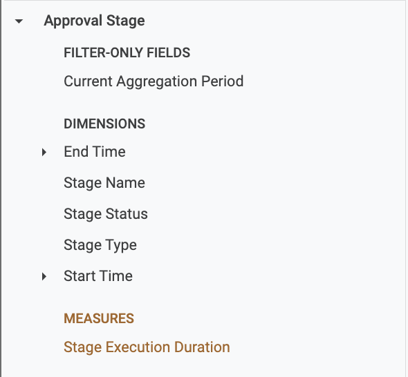• Similarly, when you select fields from the Custom Stage Executions view, only custom stage data is displayed.