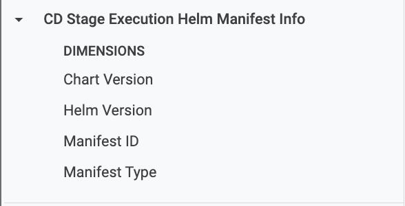 This view contains the data related to the Helm manifest info that is used in CD stage executions. The data is recorded per CD stage execution. For example, if there are 10 executions of a single service with a Helm manifest linked to it, this view will have 10 records.