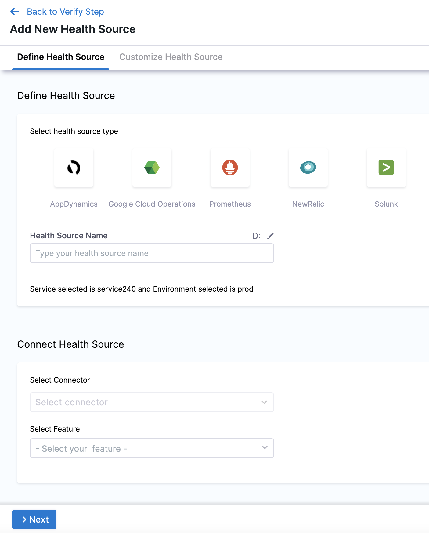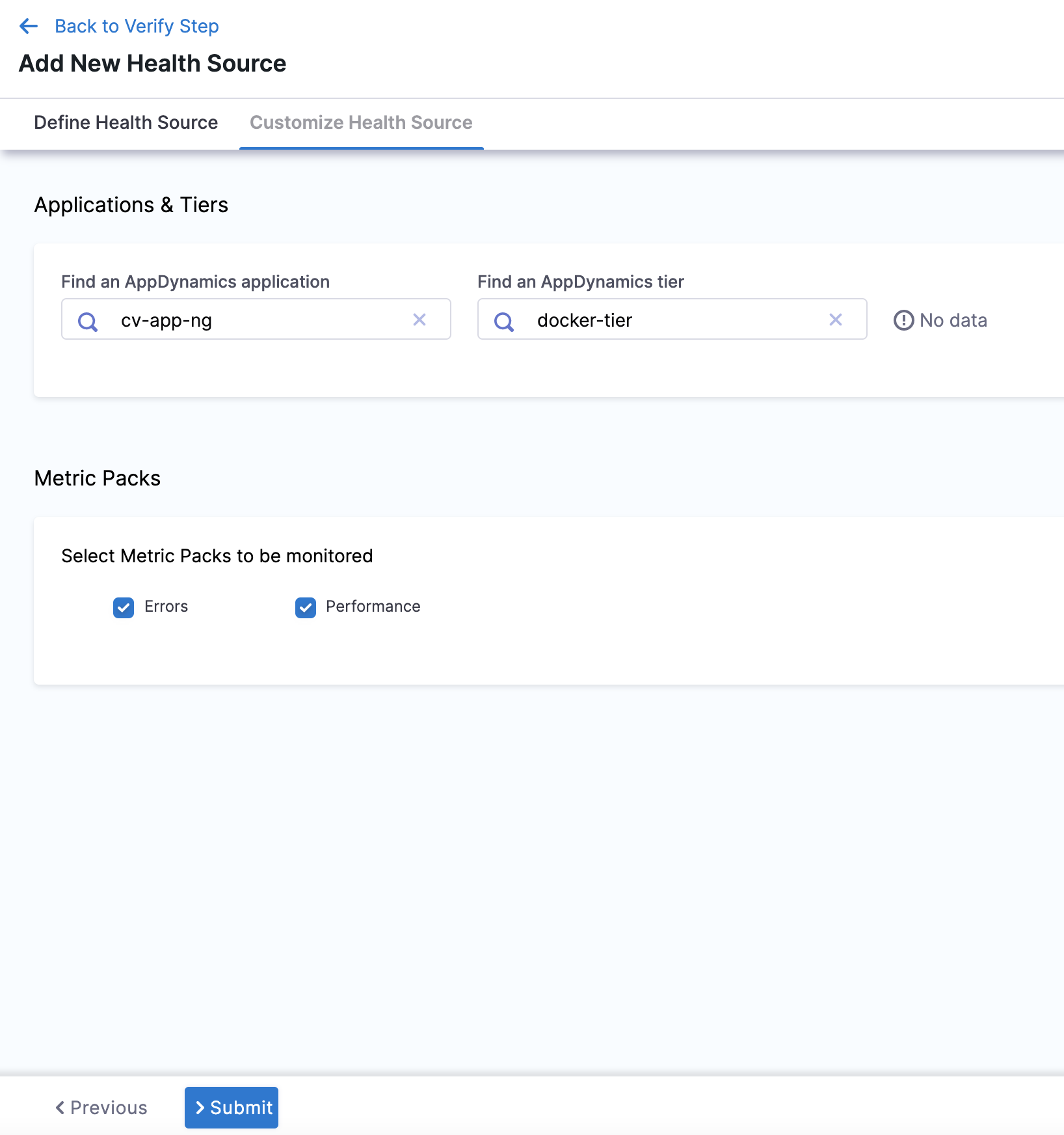 3. Click Submit. The Health Source is displayed in the Verify step.