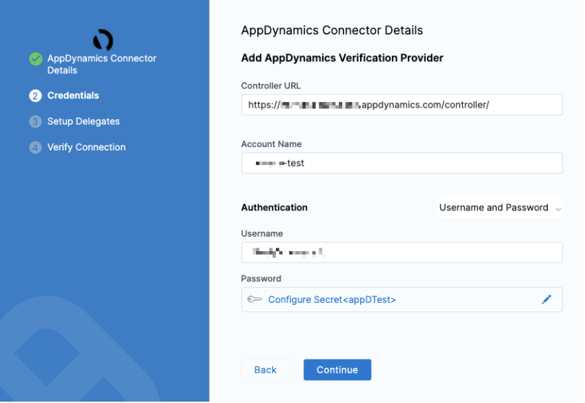 8. In Find an AppDynamics application enter the name of the application and select an option from the list.