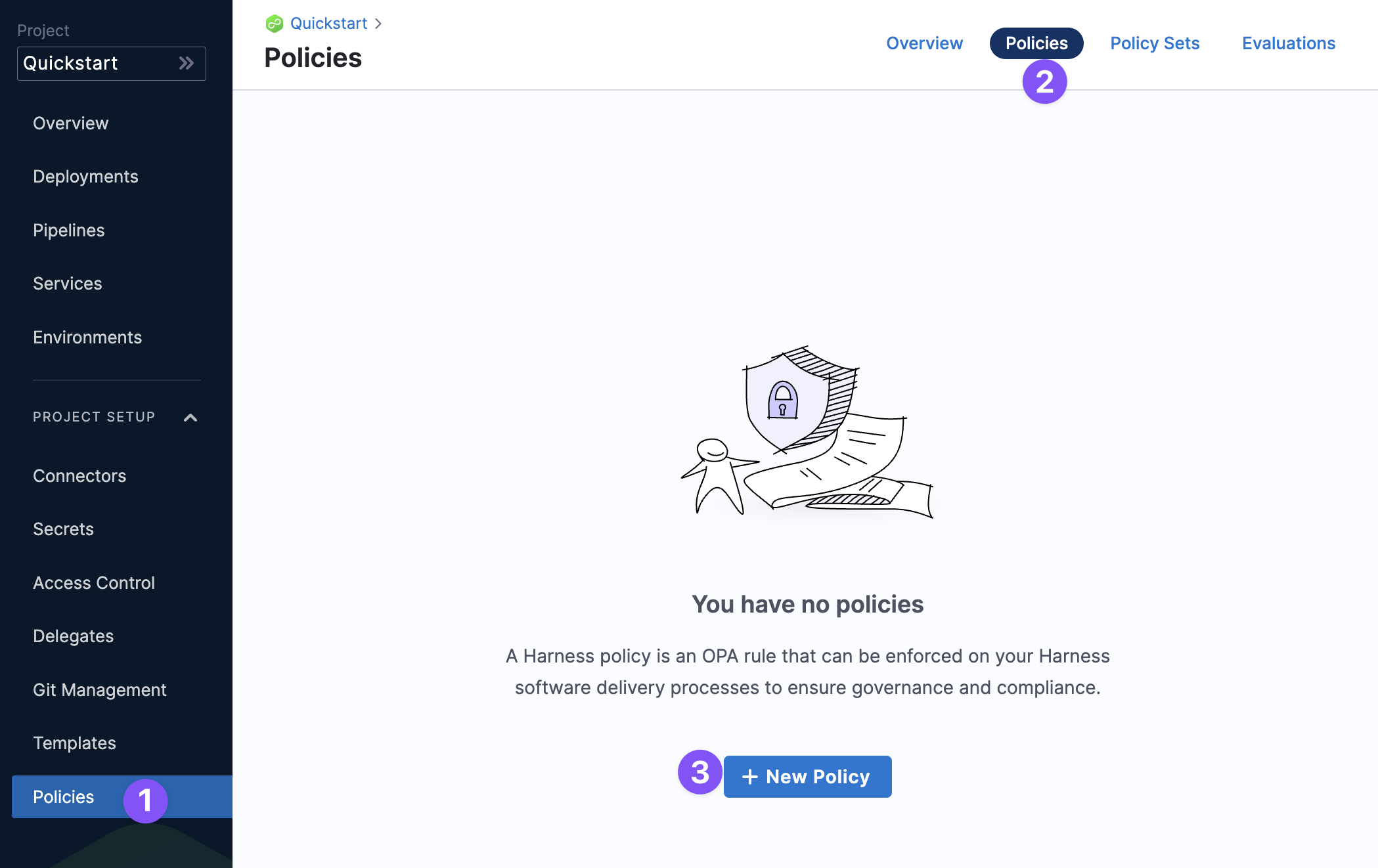 In the Harness Project, in Project Setup, click Policies.