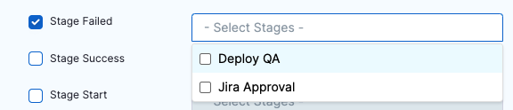 2. For a Stage Start event (such as during a deployment stage), the notification summary will include unresolved expressions for services, infrastructure, and environments. This is intentional, as the notification is sent before all references are fully resolved, preventing any potential errors in resolution from causing the stage execution to fail.
