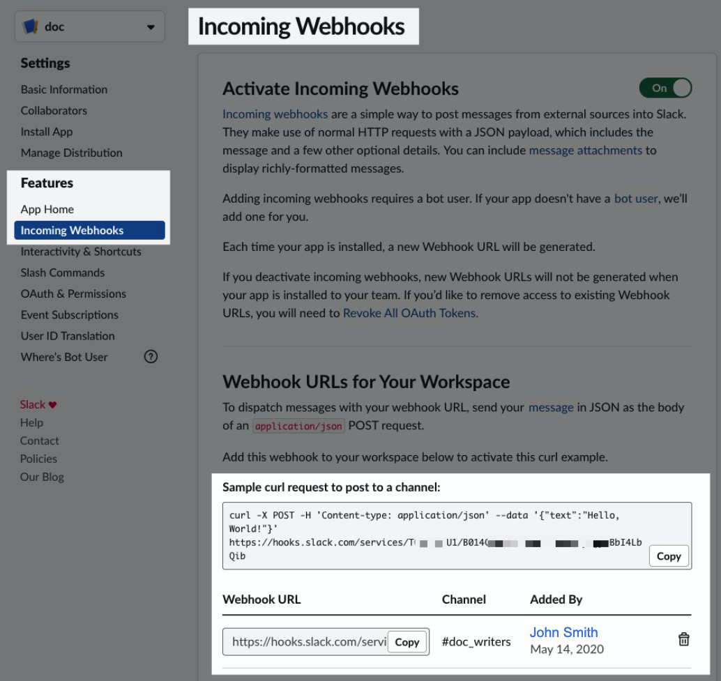 When you are done, you'll have a webhook that looks something like this: