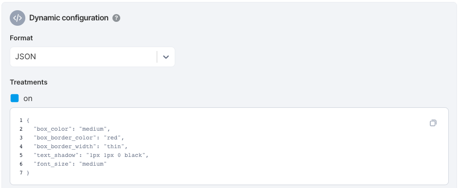 You can attach configurations to any of your treatments on a feature flag's Definition tab to dynamically control components of your features, such as: