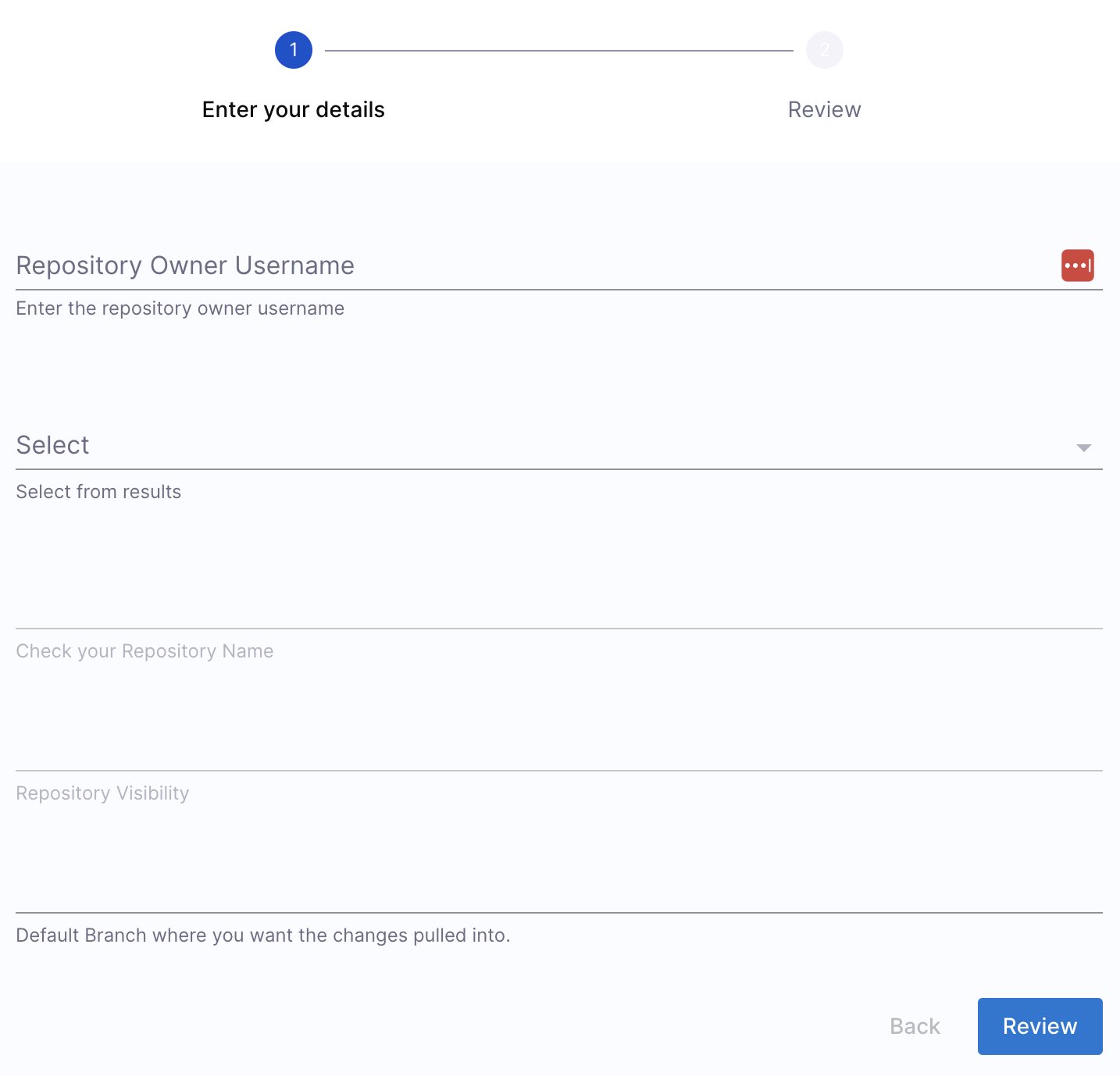 3. Auto-update Repository Details: Fetch and store context data (e.g., repository name, branch, and type) and display it for user validation.