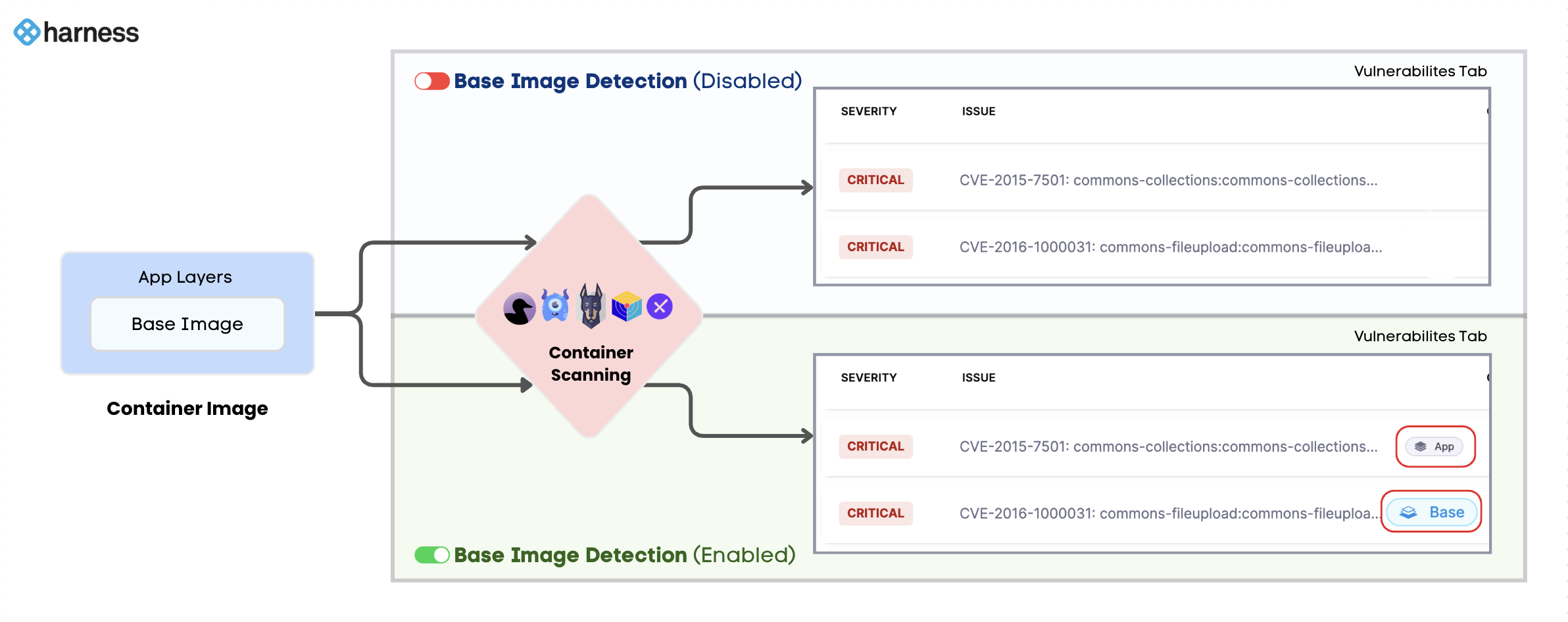 • This feature is behind the feature flags STO_BASE_IMAGE and STO_BASE_IMAGE_DETECTION. Contact Harness Support to enable this flag.