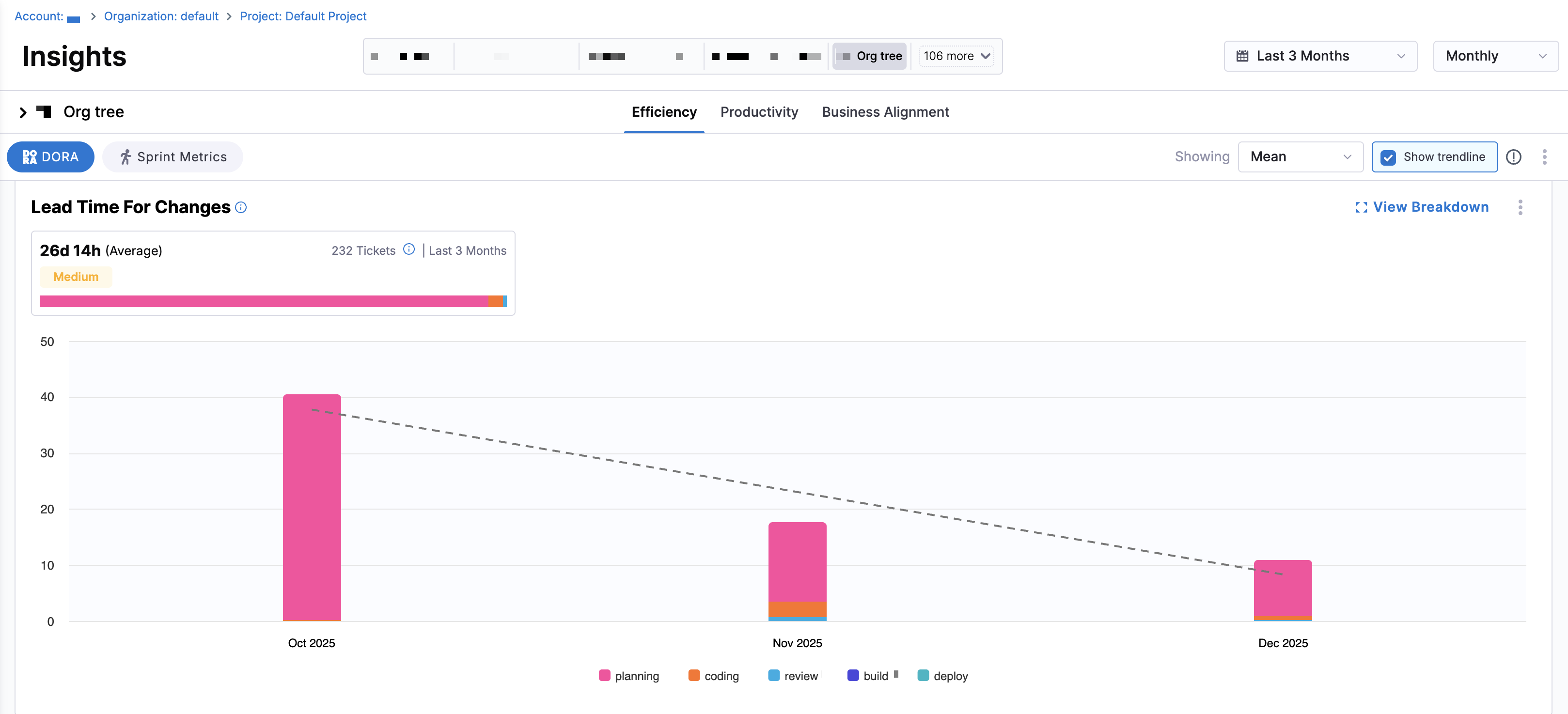 [New Feature] Trendlines across Efficiency and Productivity Insights in SEI 2.0